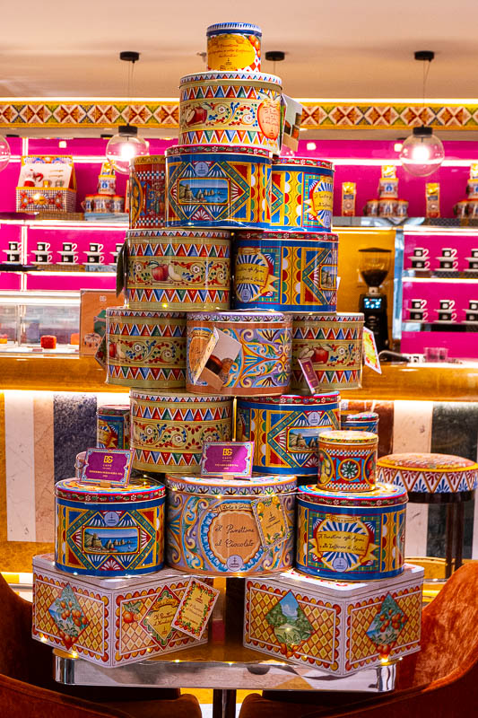 And for the festive season, they even have a Christmas tree on display, as well as a tower of panettone boxes (more on this below) stacked in a way that almost makes it a secondary “tree.”
