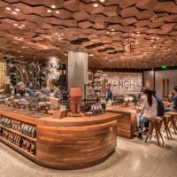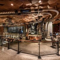 The ground floor features three coffee experience bars, one of which is the longest Starbucks coffee bar in the world, stretching an impressive 26.9 meters. As a special tribute to China’s tea culture, the Roastery also features the nation’s first Starbucks Teavana Bar, offering a modern tea experience. It is also home to the first Princi bakery and cafe in Asia, which produces fresh baked breads, pastries, and pizzas daily. Completing its innovative offerings, it was the first Starbucks in China to integrate an Augmented Reality experience. The second floor is also home to Bar Mixato, the flagship location of Starbucks’ cocktail bar program in China.