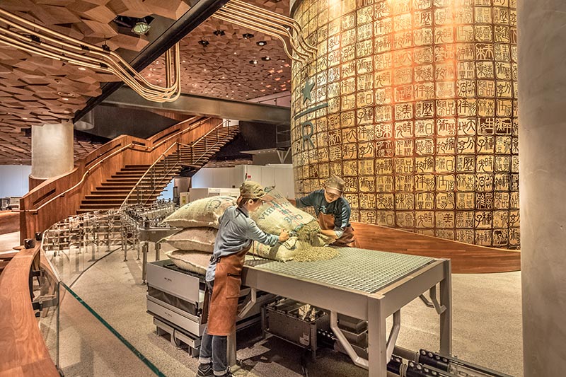 The Starbucks Reserve Roastery Shanghai is the coffee giant’s premier destination store in China, located in Jing’an district, Shanghai. Opened in December 2017, this two-story, 2,700-square-meter wonderland is the world’s third-largest Starbucks store and is entirely dedicated to the spectacle of coffee and tea.