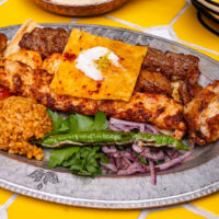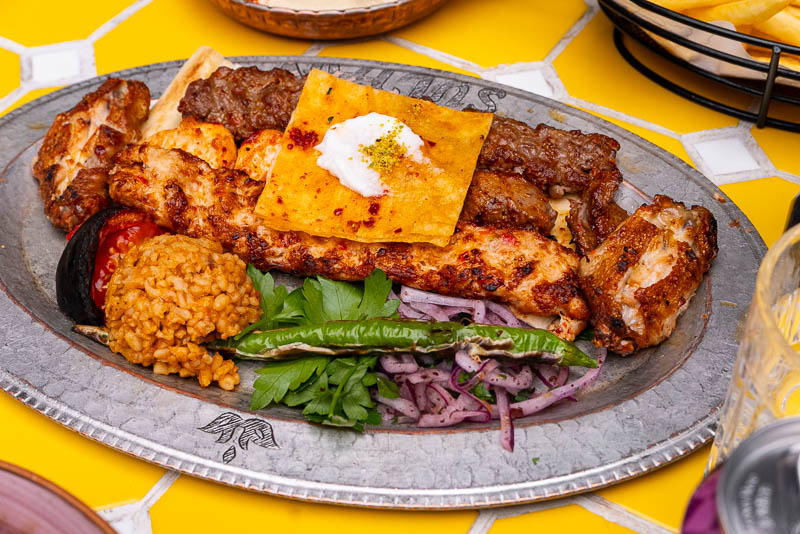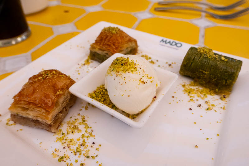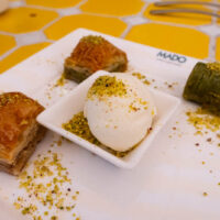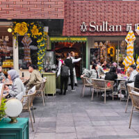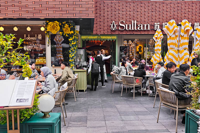 Sultan is a halal Turkish restaurant at PAC mall in Jing’an district, Shanghai. The space commands a grand dining room, a spacious and colorful oasis complete with fabric parasols, lemon trees, and elegant tiles. There’s also a spacious outdoor terrace and two private dining rooms. The menu is a veritable encyclopedia of Turkish fare, featuring essential mezze like hummus and cacik alongside expertly grilled platters of lamb chops and beef kebabs. Sultan has also partnered with Turkey’s legendary MADO brand, whose famously resilient ice cream claims its own counter, standing proudly next to decadent displays of desserts, including the popular baklava and kunefe.