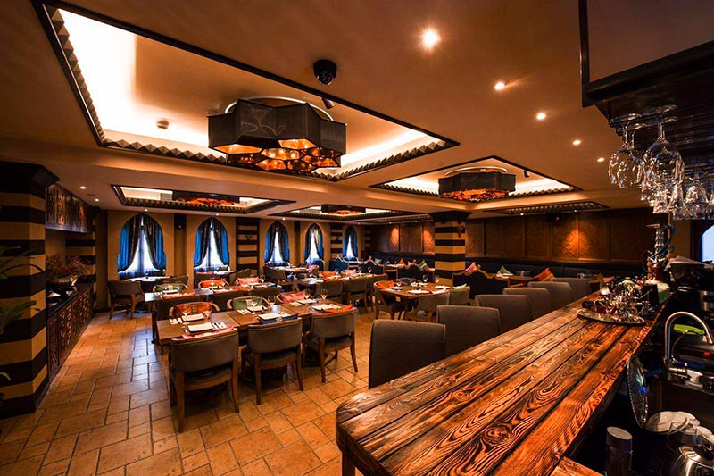 Located on the Bund in Shanghai, Tajine Moroccan Restaurant is a halal restaurant that specializes in authentic Moroccan cuisine prepared in traditional tagine pots. The menu offers nearly a dozen tagine variations, including options such as fish kofta with harissa, chicken with preserved lemon and saffron, beef kofta with tomato sauce and grilled peppers, and lamb with saffron and ras el hanout. Expect traditional mezze cold starters like couscous, hummus, baba gannoush, grilled peppers, labneh, and salads. The restaurant also features a selection of roasts, including lamb chops, shish kebabs, steaks, and seafood. Cocktails, wine, and shisha available.