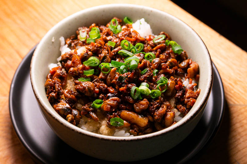 Finally, something that’ll satisfy and fill you up: the Fried Rice with Thin-Shelled Mussels and Minced Ginger (¥24). It’s a really tasty bowl of rice. Topped with tiny baby mussels — the smallest I’ve ever seen. Small but mighty, these mussels pack a ton of sea-fresh flavor. Beneath them is a layer of finely minced ginger, which gives the dish its spicy kick. And I can’t believe it’s only ¥24.