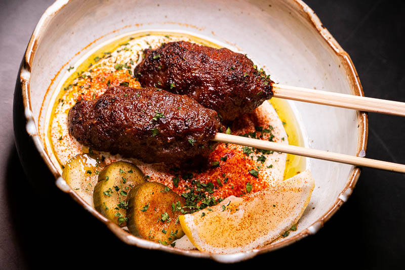 A personal favorite is the Lamb with Cumin on Yogurt (¥68). Smoky skewers of lamb are lightly sweetened by paprika, served with tangy Greek-style yogurt and pickles that cut cleanly through the richness.