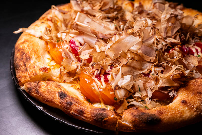 The White Miso Thick-Cut Salmon Pizza (¥188), topped with raw salmon and bonito flakes, is among the most popular. It’s not my personal favorite, though the appeal is clear for diners who see it as trading rice for bread.