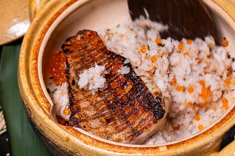 The Coral Trout version is flavored with dashi and flakes of trout, topped with a whole filet and salmon roe.