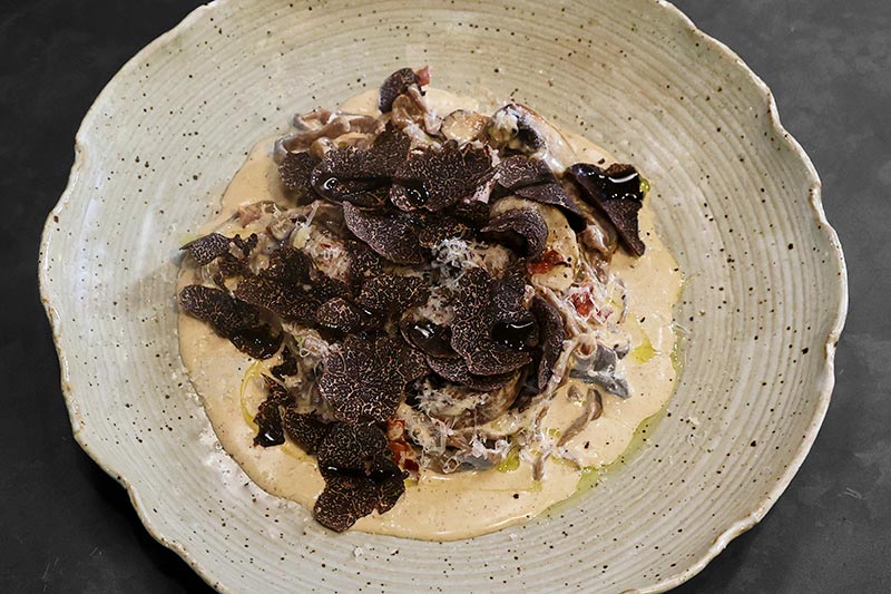 The Braised Beef Open Toast (¥88) is cooked over charcoal, while the Potato, Forest Mushroom and Oxtail Ragu (¥98) delivers comfort without heaviness, its jus binding rich oxtail, earthy mushrooms, and tender potatoes for a satisfying dish.