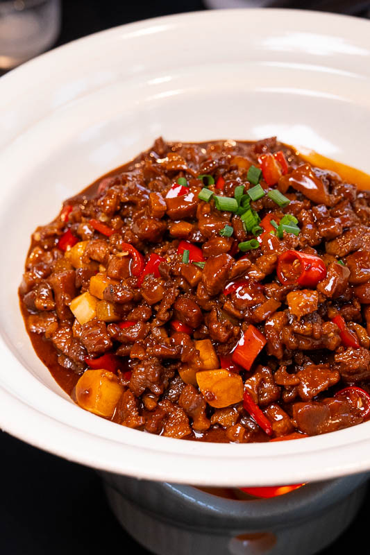 The dish combines garlic, ginger, bird’s eye chili, spices, and blood into a rich sauce that coats tender, wok-fried duck. Fragrant, spicy, and deeply flavorful, it’s best with rice. I’d order it again.